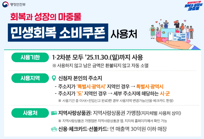 지원금을 받았다면 반드시 **2025년 11월 30일(일)**까지 사용해야 합니다. 기한이 지나면 자동 소멸되니 잊지 마세요.