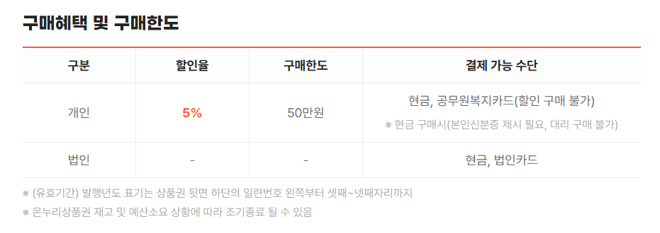 - 구매 방법: 온누리상품권 앱에서 본인 명의 카드 등록 후 충전