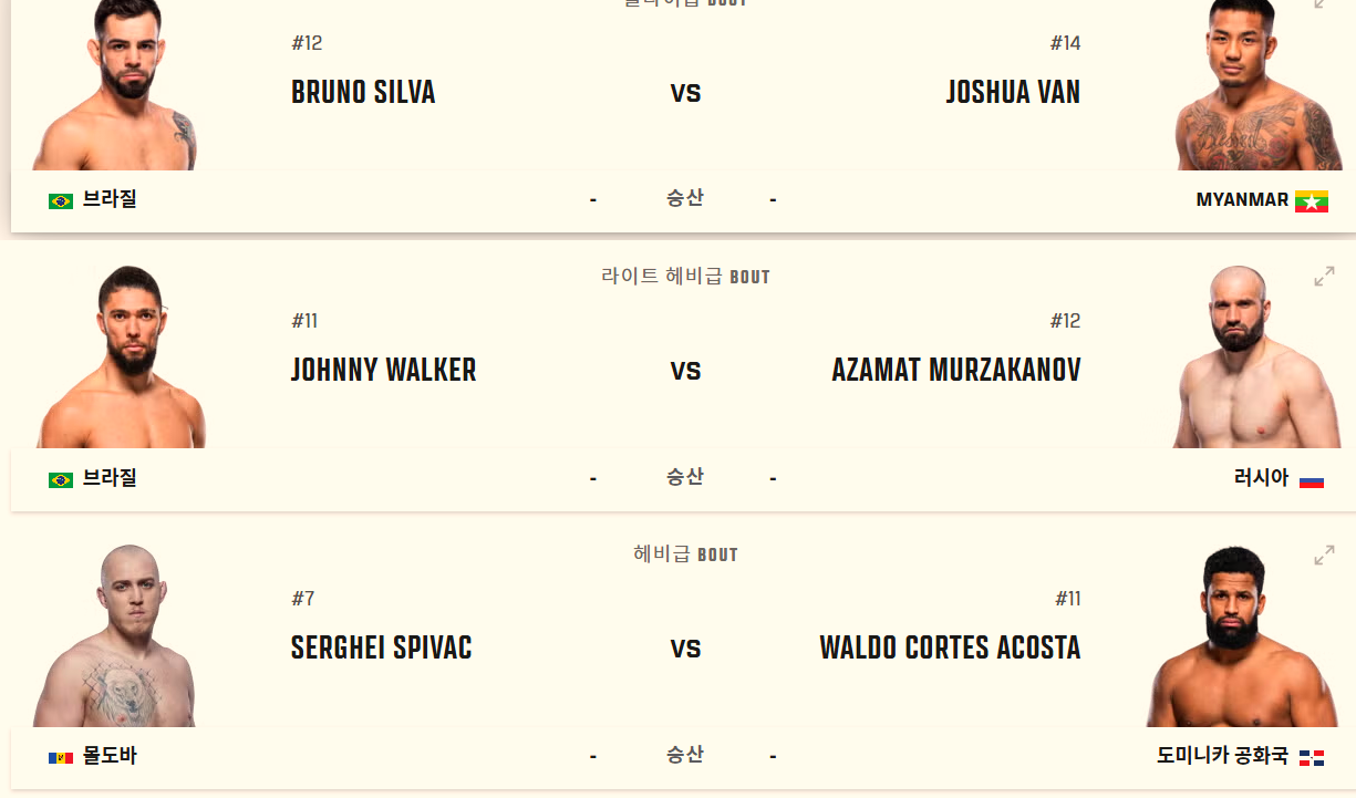- 헤비급: 세르게이 스피박 vs 왈도 코르테스 아코스타